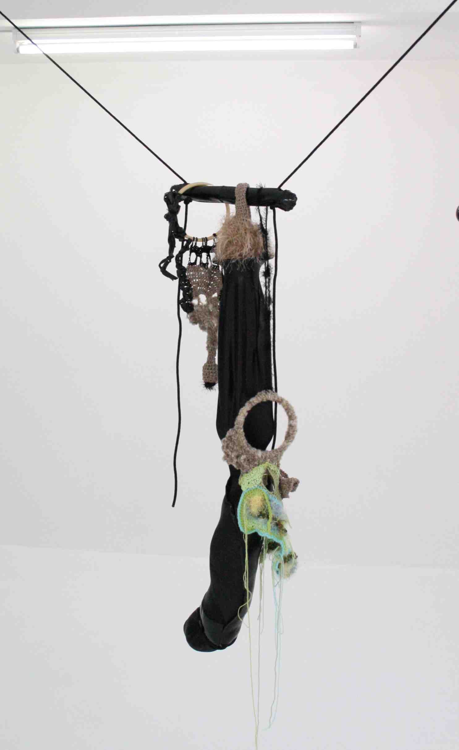 MATERIAL: Glass, various fabric, nylonrope, latex, plastic bags, yarn, cardboard, filling foam, cerenit clay, pearls, wood, etc.